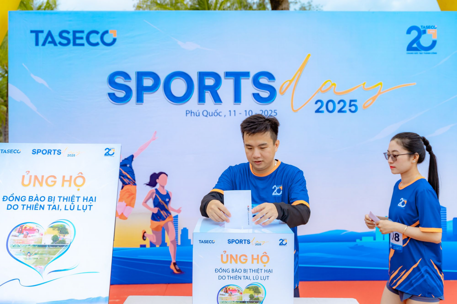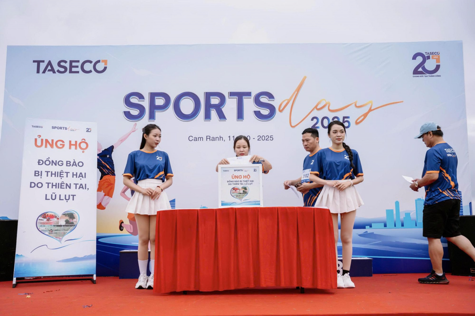 Sáng ngày 11/10/2025, trong khuôn khổ sự kiện Taseco Sports Day 2025 diễn ra tại 5 điểm cầu trên cả nước (Hà Nội, TP. Hồ Chí Minh, Đà Nẵng, Cam Ranh và Phú Quốc), chương trình phát động “Ủng hộ đồng bào bị thiệt hại do thiên tai, lũ lụt” đã chính thức được triển khai. Đây là một trong những điểm nhấn giàu cảm xúc và nhân văn, cùng với tinh thần thể thao nhiệt huyết của ngày hội.